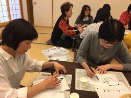 - 第二部はゆうしん先生のおもいで遊字講座。筆ペンを使ったアーティスティックな字を書く練習。ゆうしん先生は個性を「引き出す」のがさすがだなぁ、って感じます。